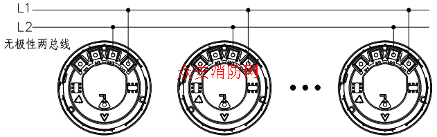 采用 ZR-RVS-2×1.5mm2双绞线,回路两总线分别接在端子 L1 和端子 L2 上,不分极性。