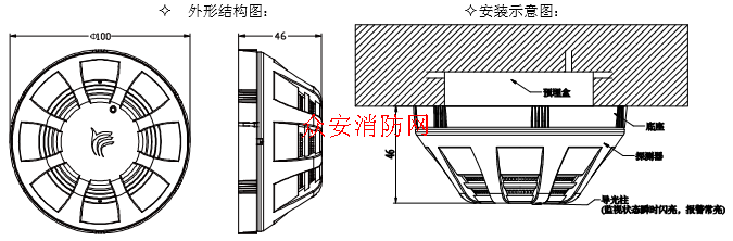 ? JTY-GD-JBF-4100 点型光电感烟火灾探测器配接JBF-VB4301B型探测器底座。 ?