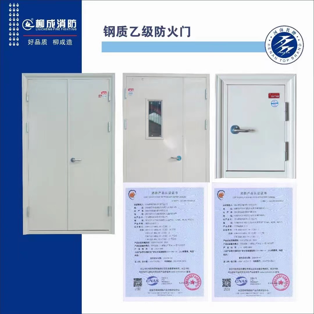 河南柳成门业科技有限公司位于八朝古都开封市尉氏县开许路福星大道西段18号,公司隶属于郑州市柳城消防器材有限公司,成立于2001年,公司主要经营研发、生产、销售、安装、维修:消防器材、灭火设备、钢质防火门、钢木质防火门、木质防火门、防火卷帘门、挡烟垂壁、医疗防火门、玻璃防火门、防火窗等。是一家集研发、生产、销售、服务为一体的企业;建筑面积一期 6.5 万平方米、二期 12 万平方米,现有员工 500 多人,是国家消防产品水系统产品的起草单位之一,是中国消防协会AAA会员、中国工程建设标准协会防火专委会委员单位、拥有产品证书 40 多项;产品通过国家消防产品 CCC 强制性认证、并荣获【技术企业】、【企业征信 AAA 级信用等级】、【中国民族企业】、【中国用户满意企业】、【中国消防器材企业】、【河南省产品】、【守合同重信用】等多项荣誉称号。 产品销售网络遍布全国各地及国外市场;成为办...