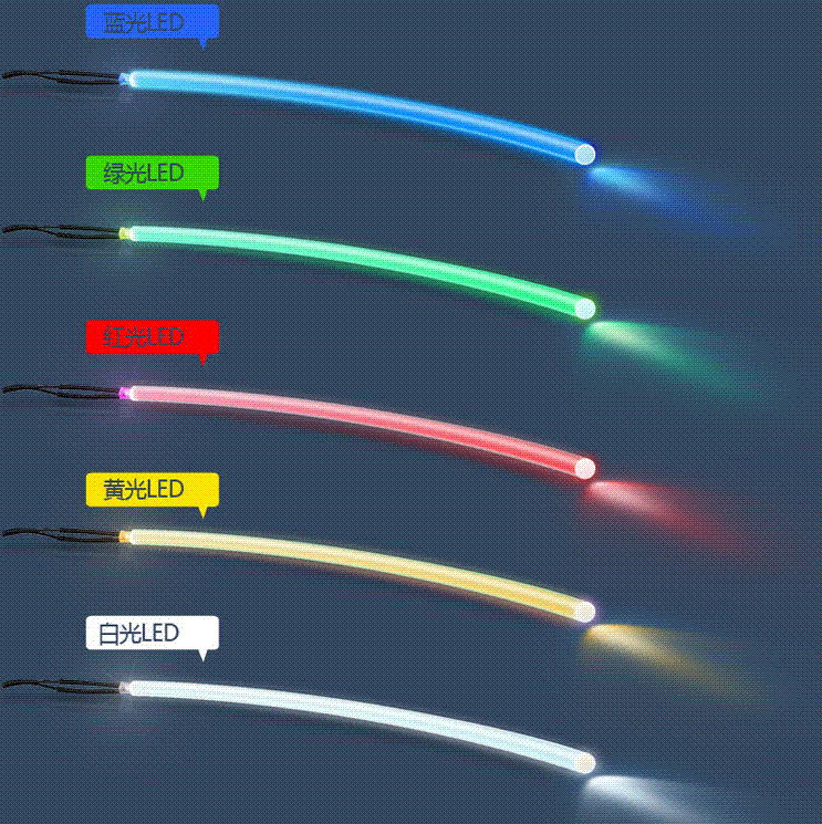 1、柔韧性好、侧发光均匀、同线径易折弯造型;