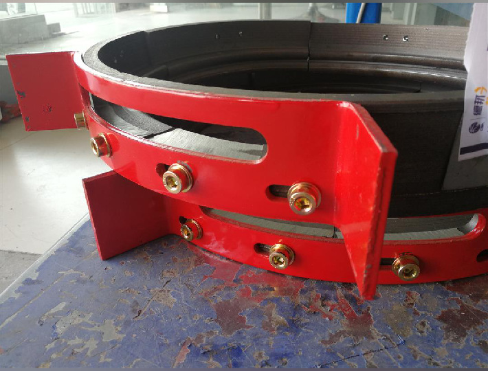 2、当卷筒转动时,随钢丝绳卷绕,由螺纹槽带动沿轴向移动,将所缠绕的钢丝绳准确地引入、引出卷筒的螺旋槽,钢丝绳由导绳器的缺口排出。