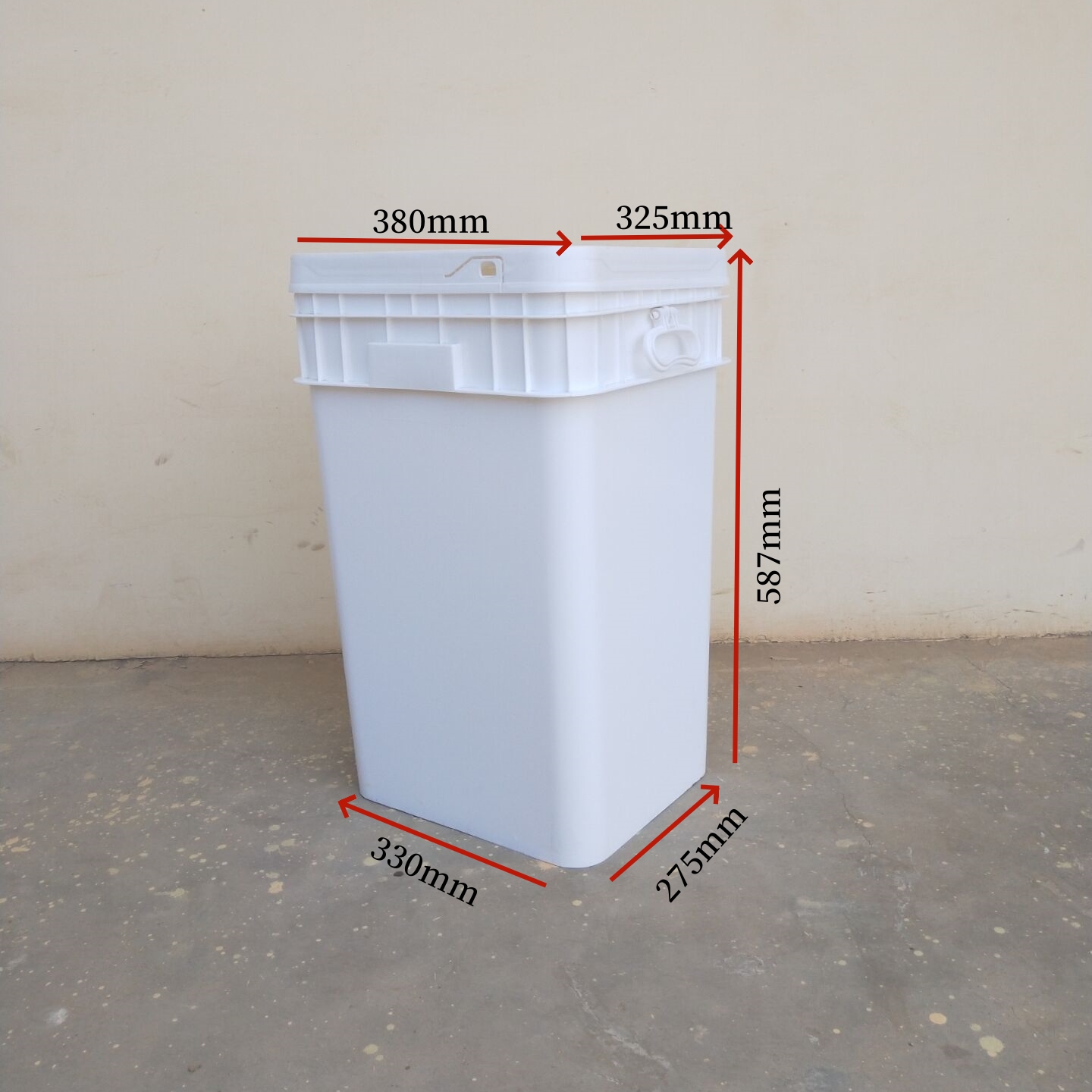 不同厂家生产的50 升方桶尺寸略有差异。一般来说,外高在 465-580mm 之间,主体直径在 320-385mm 之间。