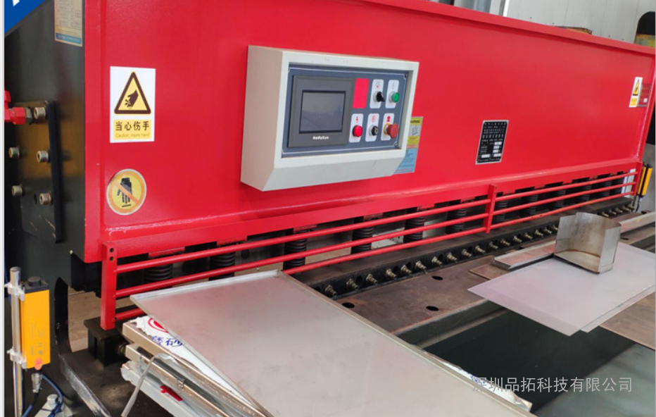 剪板机是用一个刀片相对另一刀片作往复直线运动剪切板材的机器。是借于运动的上刀片和固定的下刀片,采用合理的刀片间隙,对各种厚度的金属板材施加剪切力,使板材按所需要的尺寸断裂分离。剪板机属于锻压机械中的一种,主要作用就是金属加工行业。如果没有对剪板机进行防护装置,操作人员就容易被高速下降的冲头剪压使得人身安全受到伤害。