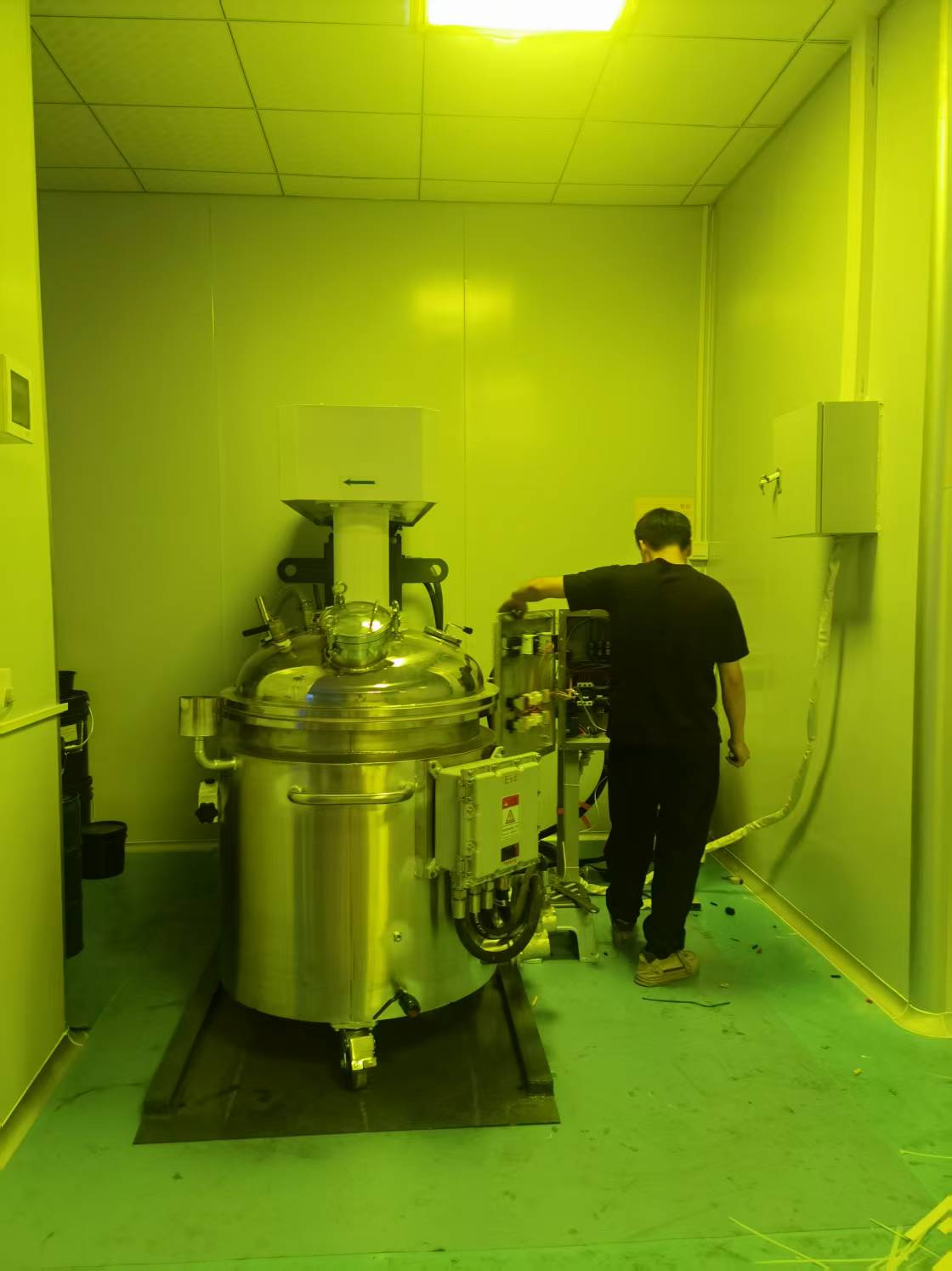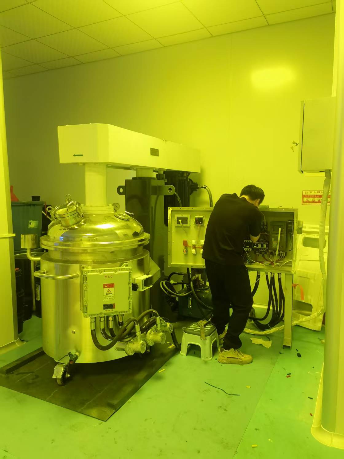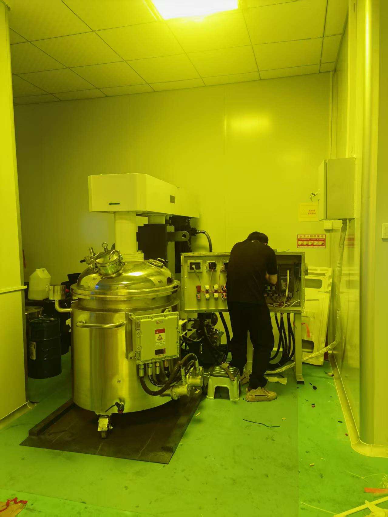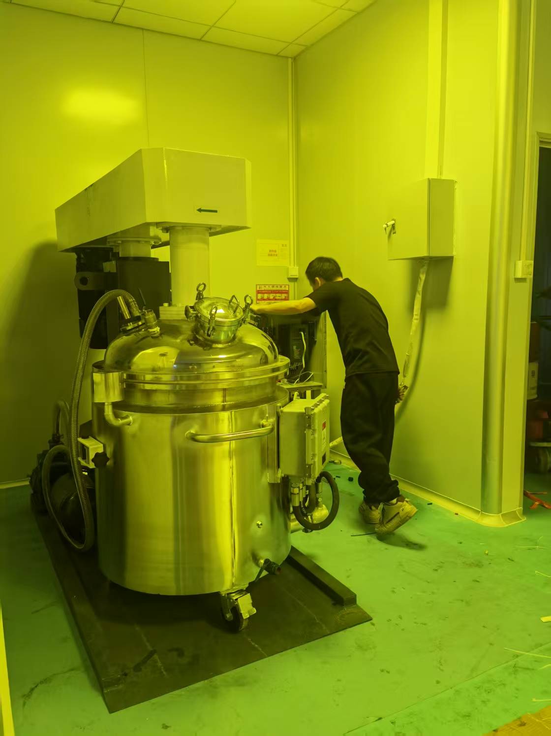 特点1、单臂液压轴升降系统结构。2、精心设计的搅拌分散结构,搅拌均匀,无死角。3、真空脱气,无细菌污染。4、根据工艺要求可配电加热、蒸汽加热,水冷却装置。5、真空分散机与物料接触的部分均为不锈钢材料。6、分散后的物料颗粒粒度为1~2μm。7、真空分散机规格可根据客户要求,设计制造。8、真空系统装置真空泵浦,由上盖抽真空。9、内侧快速搅拌轴为牒齿型搅拌叶,独立装置马达并配置变频器控制转速,作业转速 0 – 1500rpm。中间不锈钢搅拌轴为蝴蝶翼型附刮板式搅拌叶,马达配置1:30减速机及变频器控制转速,作业转速 0 – 200rpm。