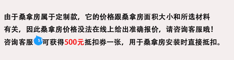定制家用桑拿房 光波汗蒸房 干蒸湿蒸房砭石能量房 安装设计,桑拿房和汗蒸房哪个好 两者各有不同,又有相当之处,不同为:桑拿房的空气温度为60度,桑拿时间为10-15分钟,汗蒸房的温度为42度,汗蒸时间为35-45分钟,桑拿房的喜爱者男士居多,汗蒸房的喜爱者女式居多,桑拿房应用于酒店、温泉比较多,汗蒸房应用于家庭和汗蒸馆比较多。