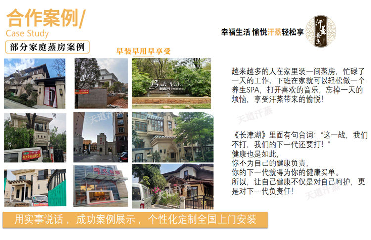 私人汗蒸房定制 家庭别墅桑拿房 家用远红外光波干蒸湿蒸房,汗蒸后多久可以洗澡,通常汗蒸之后2小时后再洗澡,汗蒸的时身体所有的毛孔都打开了,容易感受风寒湿邪,汗蒸后需要做好保暖,不要受凉,汗蒸结束后,要稍做休息,慢慢的等自己的身体逐渐的消汗,让身体逐渐的恢复到自然状态,再进行冲澡;为什么不建议汗蒸完立马洗澡呢,一是汗蒸完之后没有汗臭味,不用马上洗澡,二是如果不慎在汗蒸之后洗澡,有可能因为水温调节不好或者水温偏低,使风寒之邪进入体内,从汗孔直接郁积到体表,体质不好的人之后可能会出现发热、鼻塞、流涕的现象。本来可以将风寒之气通过汗蒸从体内排出,但是一旦因为汗蒸之后立刻冲澡,水温调节不好受凉了,这反而其到了反作用,本来汗蒸是有益的,反而你却说汗蒸不好,让你感冒了,所以,等汗逐渐的消汗,汗蒸之后2个小再冲澡,效果会更好。