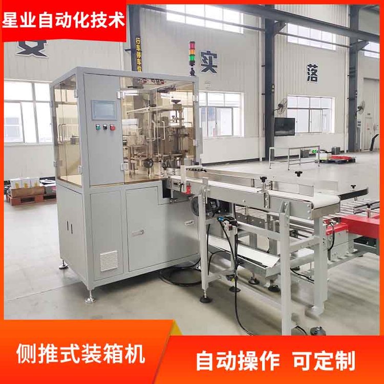 简介:本机可根据产品装箱数量的要求,自动将包装物整理排列、叠加,最终推入打开的纸箱(瓦楞纸线、塑料箱、泡沫箱、托盒等)中,所有动作全部自动完成,无需人工干预;整套系统集成在一个框架上,结构紧凑;减少生产人员和降低劳动强度,是自动化规模生产必不可少的设备。