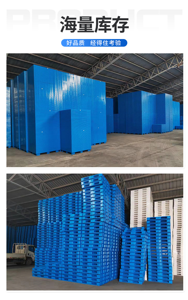 面粉厂、化肥塑料托盘在各行各业中应用不同,选择的款式的也不一样,在平时的仓库周转中,使用川字、田字、九脚、七脚或者双面型款式的都可以,但是像食用菌、化肥制造、粮库等需要码垛使用时,选择时就要慎重考虑,因为需要码垛的行业,至少在2层以上,少的话川字或者田字的还可以,但是要是在2层以上,就要选择双面塑料托盘,此托盘反、正面都是一样的形式,码垛中使用,不会对货物造成损失,主要原料是一些高强度原料,其性能强度高,承受力大,使用寿命长。 双面型塑料托盘主要款式有: 双面塑料托盘:1100*1100*150动载:1.2T静载:6T; 双面塑料托盘:1200*1000*150动载:1.5T静载:6T; 双面塑料托盘:1400*1200*150动载:1.5T静载:6T; 双面塑料托盘:1200*1200*150动载:1.5T静载:6T。 化工塑料托盘加工常用材质 分高密度低压聚乙烯(HDPE)和聚丙烯(PP)两种。质地坚硬,耐寒性良好,化学稳定性高,能耐酸碱及有机溶剂。有很突出的电气性能和良好的耐辐射性,有较高的耐热温度。。