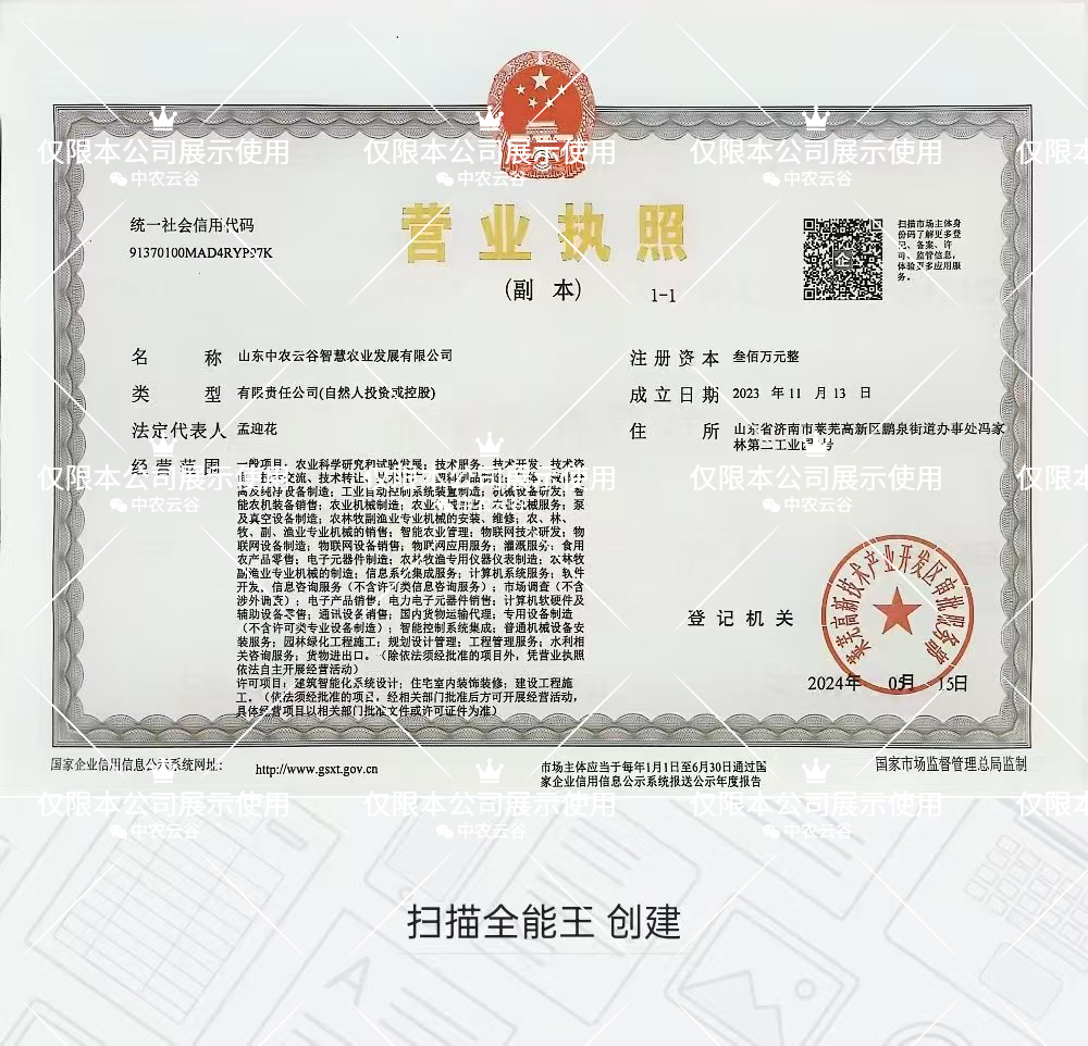 山东中农云谷智慧农业发展有限公司