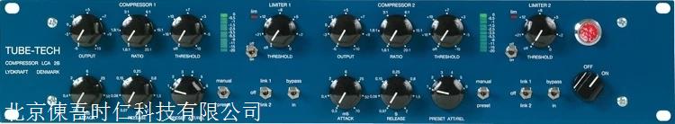 这是款在每个通道上都配有独立压缩器和限制器的双通道器材。这款设备是全电子管构造(除了电源部分和侧链路部分)。 VCA ( 1 号三级真空管)位于输入变压器和输出极之间。 VCA 获得的声音讯号反馈到侧链路中。来自于压缩器和限制器的控制讯号结合到一起传输到链路开关和控制放大器中,然后再反馈到 VCA 中。这两个双向链路母线可以连接到控制板后的两个 1/4 英寸的立体声插孔。通道可以被一起连接到立体声器材上,还可以通过两个连接母线和一个标准立体声插头连接到其它的 LCA 2B 上。这款压缩器有六个 att/rel 预置和手动控制。限制器是固定的。 LED 显示从控制放大器反馈。限制器 LED 从限制器缓冲器反馈。声音路径从输入到输出都是完全对称的。输入和输出都有非固定的变压器。除了在输出端的阳极电压外,所有的 DC 电压都是稳定的。