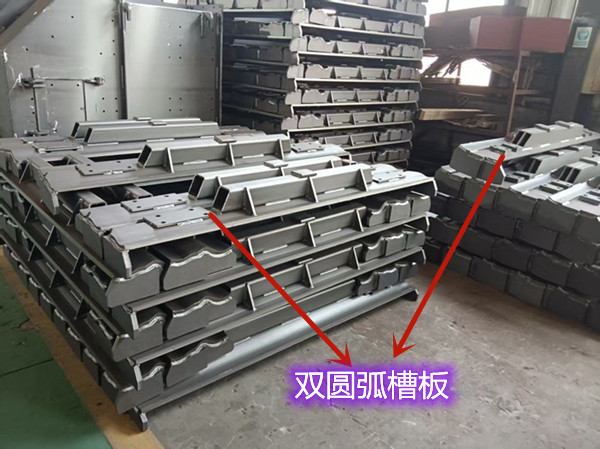 需要注意的是,双圆弧槽板的制造工艺相对复杂,对加工精度要求较高,制造成本可能略高于单圆弧槽板。但在实际应用中,其防漏料和结构强度优势使其成为板式喂料机中广泛应用的一种链板结构形式。