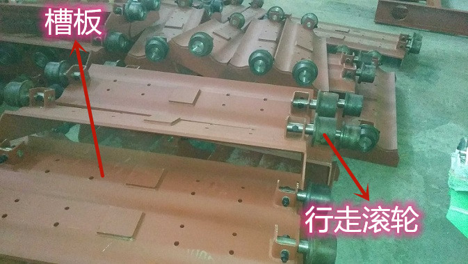 行走滚轮安装在机架上,通过轨道或导轨支撑链板和物料的重量,减少链板与机架之间的摩擦,降低运行阻力,延长设备使用寿命。