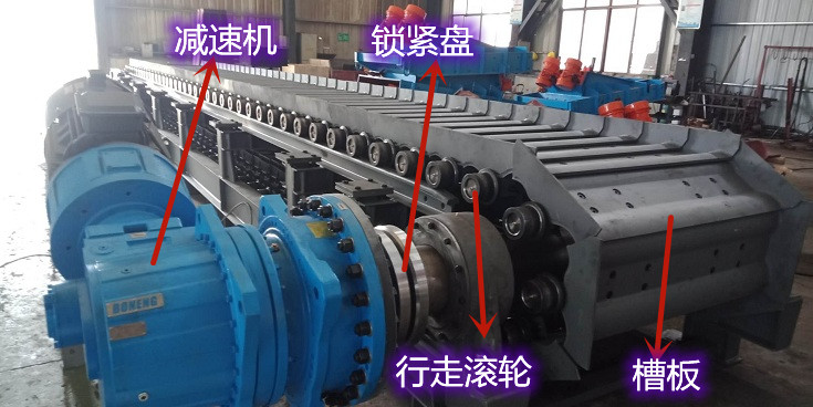 部分行走滚轮设计有缓冲机构,可吸收物料冲击和链板运行中的振动,减少对设备的冲击载荷,提高设备的运行平稳性。