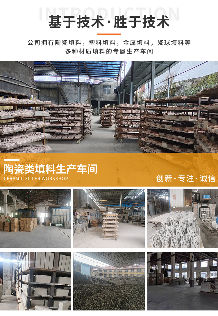 公司始建于一九八零年,随着业务拓展,企业不断的发展壮大。公司现有职工200余人,其中技术人员20余人,固定资产1500万元,占地面积30万余平方米。经过数次体制改革和全厂干职员工三十多年的共同努力,现已在工业园区形成了集工业陶瓷、化工填料(陶瓷、金属、塑料、环保滤料等产品)及防腐施工一体的工业企业。产品广泛应用于化工、、冶炼、电力、石化、环保等各个领域,并具有良好的业绩和实力,曾多次获得用户满意产品的荣誉称号。