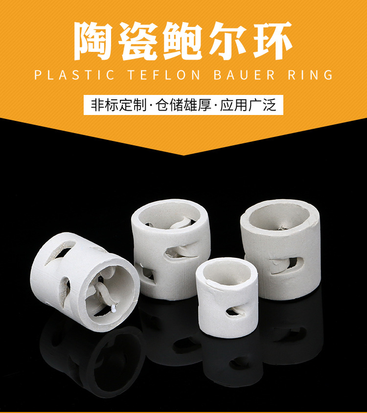 ●陶瓷鲍尔环可使用于干燥塔,吸收塔,冷却塔,洗涤塔在化工、冶金工业、煤炭天然气工业、工业氧气生产行业,等等。