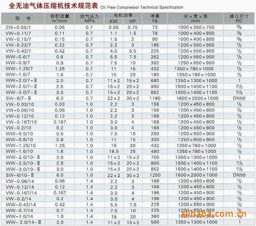 全无油润滑往复活塞压缩机系列:流量从0.01m3/min,压力从0.1MPa到15Mpa,电机功率从0.1KW到132KW,压缩介质为空气、氧气、氮气、六氟化硫、油气、氢气、氦气、氩气、二氧化碳、沼气、天然气等气体。根据用户要求,有普通型、静音型、防爆型、防腐型等。