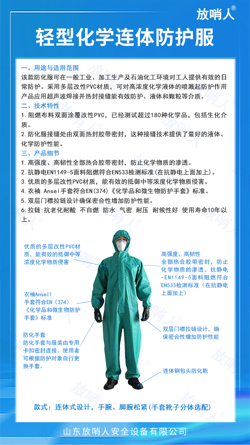 放哨人 FFY-03 连体式防护服 耐酸碱阻燃防化服 化工厂专用防毒衣