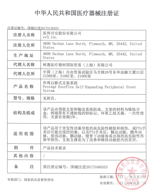 柯惠 外周自膨式支架系统 PRP35-06-060-120 该产品由预装支架和输送系统组成。支架的材料为镍钛合