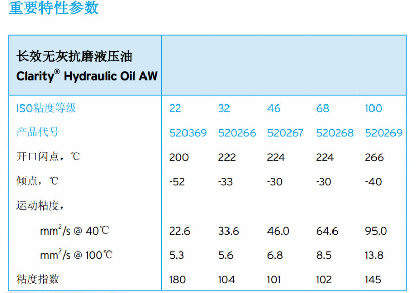 加德士抗磨液压油AW 长效无灰100 (Clarity Hydraulic Oil AW100)