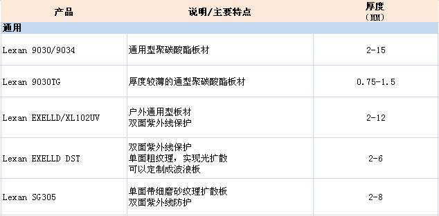 通用实心板:这种不易破损的透明Lexan?聚碳酸酯板材具有高抗冲击强度及可成型性,户外用通用级板材提供一侧或双侧紫外线防护,即使经历多年的强光和极端天气,依然能保持的澄清度。lexan系列PC板材MR5E双面抗划痕通用型9030进口PC耐力板