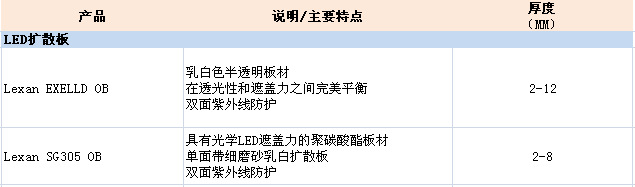 扩散板:具有独特的光扩散性能的乳白色PC板,双面均有防紫外线功能,适用于背景灯、标牌、通信道、柔光镜、保护屏幕、广告用卷帘等。