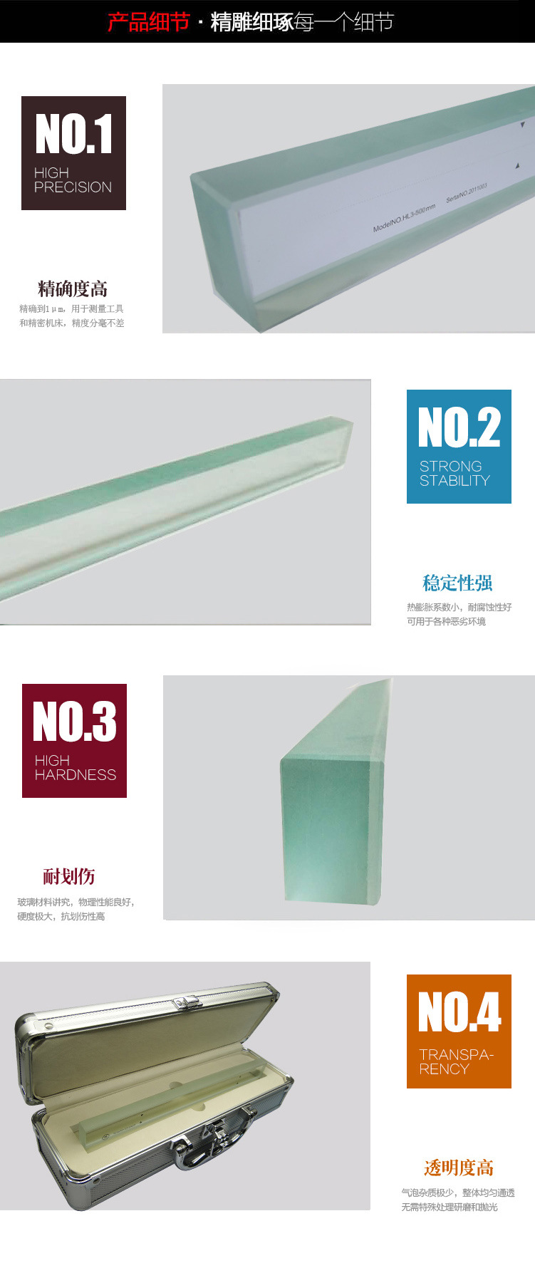 光学玻璃线纹尺具有热膨胀系数小、精度高、硬度较大、防腐蚀性好等特点。