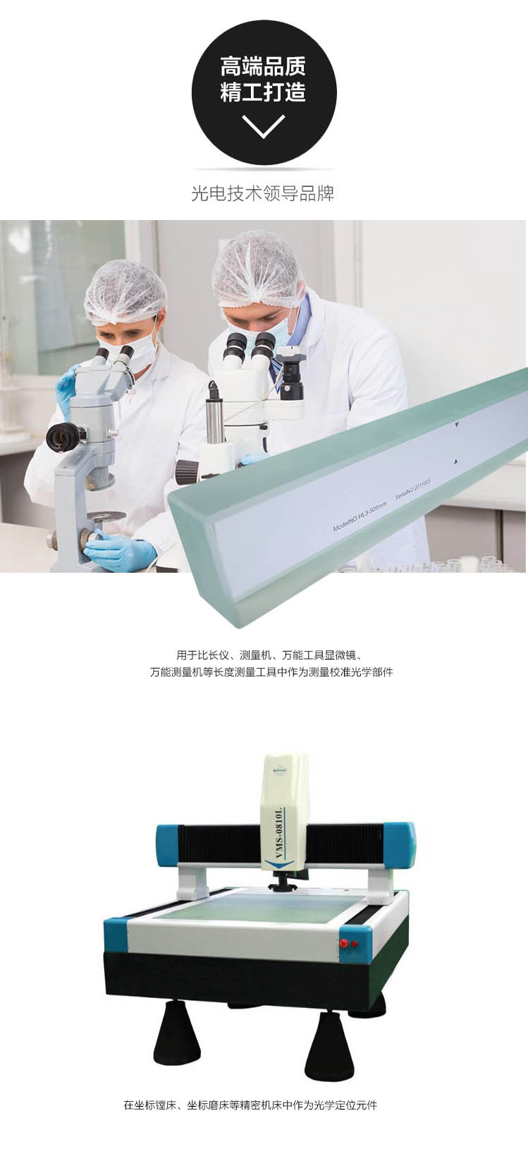 玻璃线纹尺主要是用于比长仪、测量机、工具显微镜、测量机等长度测量工具中作为测量校准光学部件;