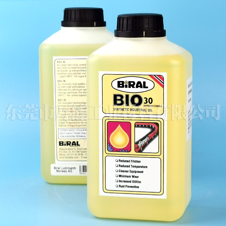 挪威BIRAL BIO 30环保型无碳链条润滑油有效防止链条锈蚀和氧化,适用于潮湿或腐蚀性环境,避免传统润滑油因高温碳化导致的积碳问题,保持链条清洁。