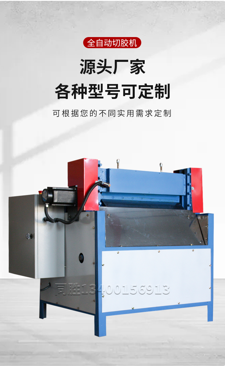 液压切胶机,顾名思义,是以液体油压为动力,配置不同规格的液压油缸产生相应的公斤力,切断不同材质的物料。立式结构横刀设计,添加物料省事方便。