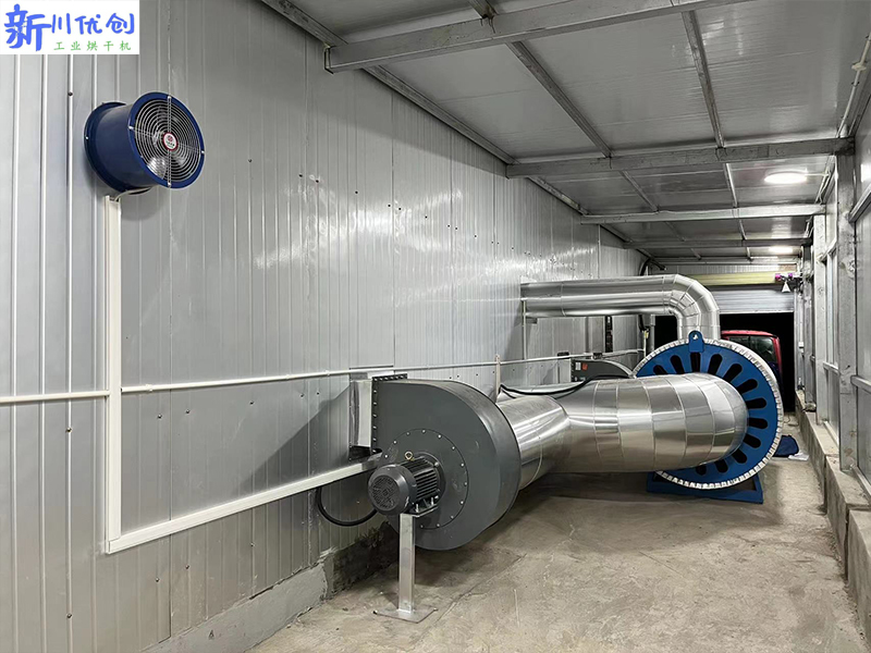 加热与循环:热风炉产生高温热风,经风管均匀输送至烘干房各角落,循环风机确保热量分布均匀。