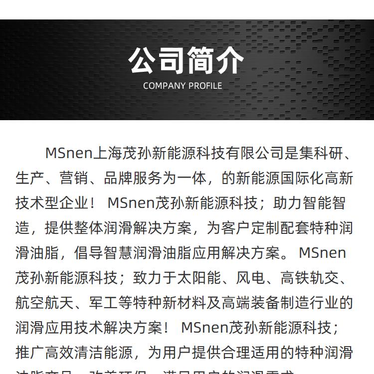MSnen茂孙新能源科技;推广高效清洁能源,为用户提供合理适用的特种润滑油脂产品,改善环保,满足用户的润滑需求。
