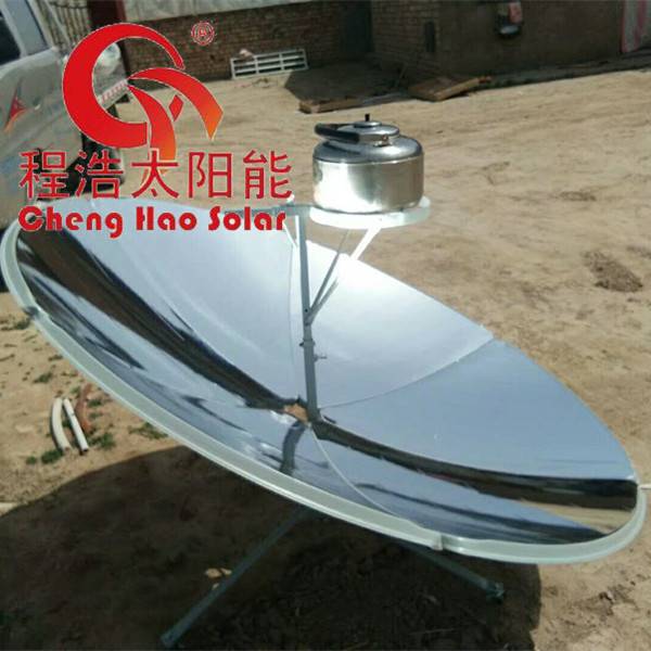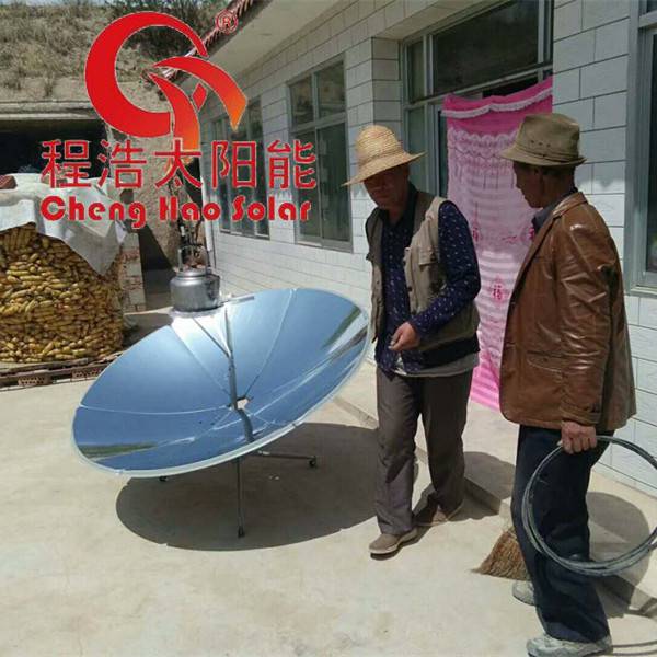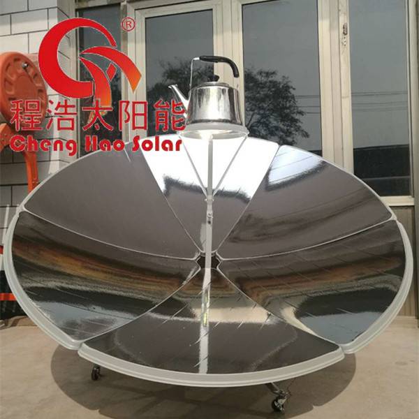 冲压折叠太阳灶使用方便、安全、坚固耐用、调节稳定,使用寿命长。运用了光学理论和人体工程理论,采用偏焦偏轴式设计而成。从而反光板上没有壶影效果,热效率大大提高,利用率可达98%,同等面积的太阳灶是无法相比的。本灶光斑处温度可达近千度,功率相当于2000瓦电炉,夏天,4公升凉水只用20多分钟即可烧开。截光面积2.2平方米,重量:17KG