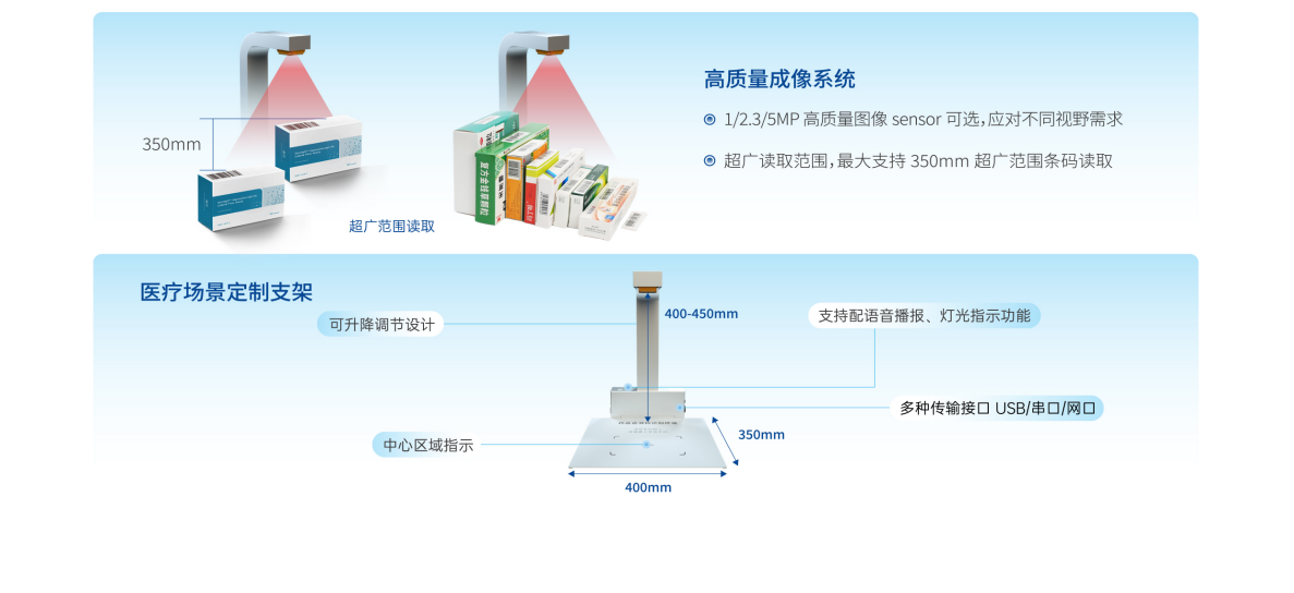 超广读取范围、蕞大可支持350mm超广范围读取。