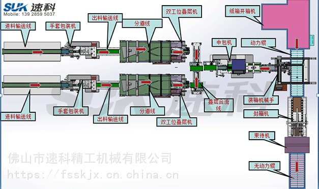 佛山速科机械致力于手套后端自动化包装生产线的研发、设计、生产,多年的从事经验成就了我们速科包装生产线设备的稳定性并拥有多家大型手套企业的真实案例,欢迎来电咨询我们速科。