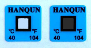 如果监温部位因温度过高造成测温贴片超温变色,冷却下来后测温贴片并不恢复原来的白色,呈记录状态