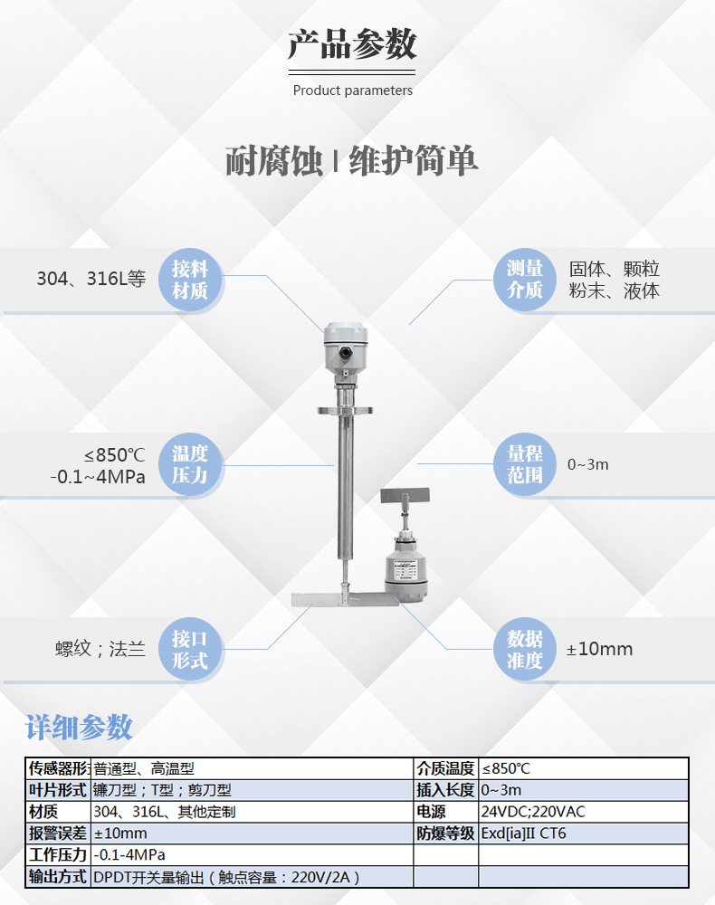 阻旋料位开关 可定制 防挂料 食品加工 河北
