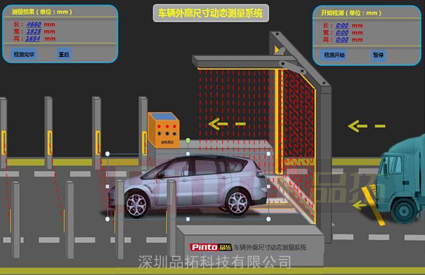 PTM测量光幕汽车高度等尺寸测量场合案列: