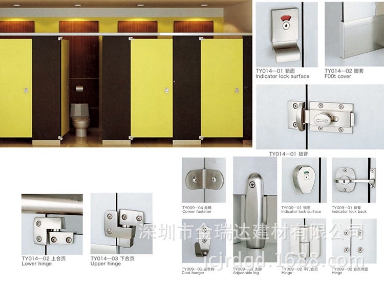 金瑞达隔断,是公共卫生间浴室隔断领域的知名品牌,它以杰出的设计和产品质量,赢得了市场的高度认可。购物广场、商业中心、学校医院、健身中心、车站机场等等,随处可见。它适应人们对卫生间,对生活的日益增长的品质需求,不断推陈出新,力求塑造舒适、幽雅的厕所空间。它性能,来源于它坚持采用具有防水防潮防霉抗菌易清洁,并极其耐磨耐撞的纤维树脂板,再加上上乘的不锈钢等五金配件,根据场所的不同,设计出经典的方案,人性化安全私密,结构稳固大气,卫生易清洁毫无死角,凸显高品质生活空间。悬挂式卫生间隔断,无支脚设计,方便卫生清洁,完整空间整体性,简洁大气;顶天立地式卫生间隔断,天地合为一体,结构稳固,大气非常;立地式卫生间隔断,增加视觉层次,注入空间活力。