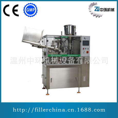 铝管灌装封尾机广泛地被牙膏、药品等行业所采用,适用于各类铝管灌封各种膏霜、乳液类、油剂等。设备采用十二位设计,自动上管、对色标、灌装、折叠封尾、压齿纹、出管。可选配管箱,密封料斗,加温料斗,自动加料,护罩等装置。
