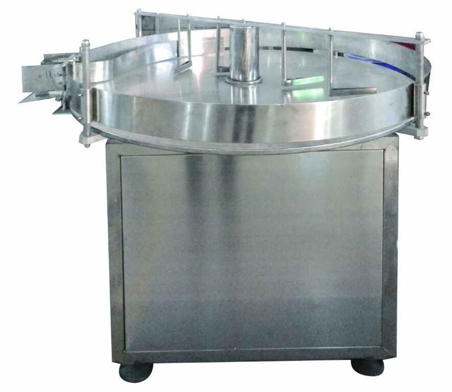 性能特点:由主转动盘和出瓶口组成;半自动操作简便,无需特别培训;更换品种时,几乎不用作调整;无级调速,速度稳定;松下无级调速器及调速电机;按 GMP 标准要求,整机采用 AISI 304 不锈钢为主要材料,并可根据要求修改;可于整线配合联动;配合生产情况自动理瓶及堵瓶自动停止。