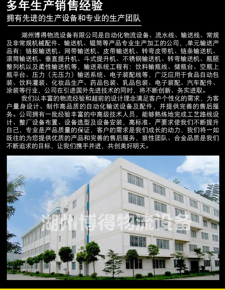 6、链板输送机一般都可以直接用水冲洗或直接浸泡在水中,设备清洁方便,能满足食品、饮料行业对卫生的要求;