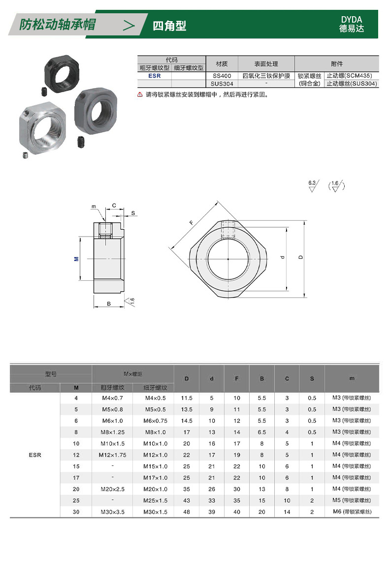 304不锈钢方型锁紧螺母