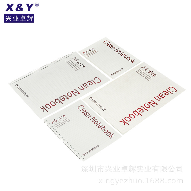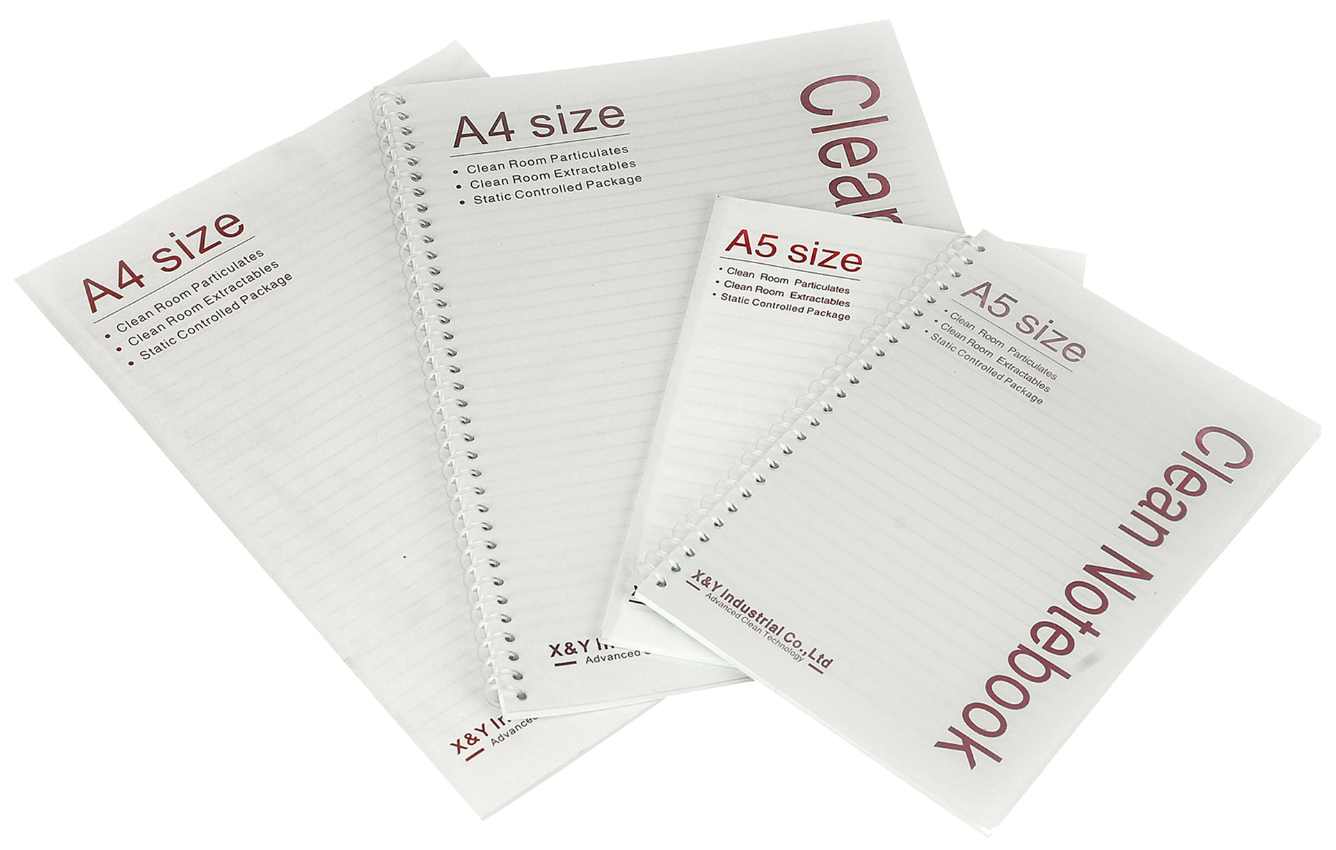 净化笔记本是由耐用的X&Y 3C纸张及具有高强度的聚乙烯封面(或一密封硬皮纸装订)塑胶螺形装订。