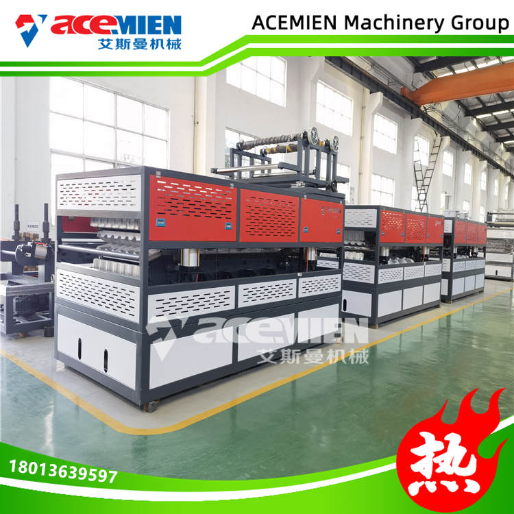 的防水性能:合成树脂瓦所选用的高耐侯性树脂本身致密且不吸水,不存在微孔渗水的问题。产品宽度比传统瓦宽45%,屋面接缝少,因此合成树脂瓦比传统瓦的防水性能大大提高。波浪瓦设备-波浪瓦生产线-合成树脂瓦设备生产线-塑钢瓦设备