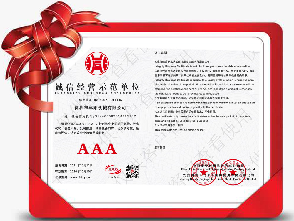 卓阳机械本着“超越用户期望”的服务宗旨,愿意根据用户要求尽快提供相应设备到达使用现场,满足用户进行相应工艺认证、评定的需求。同时愿为用户的工艺认证、评定等工作提供技术支持。