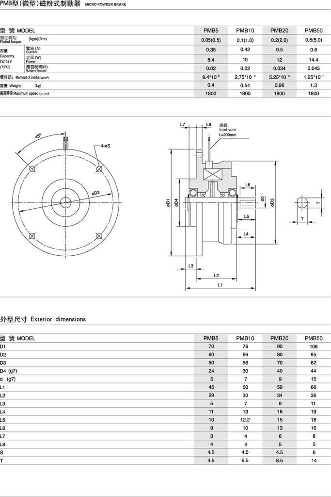 全系列的伸出轴式、空心轴式、外壳旋转式的磁粉离合器和磁粉制动器,扭力从0.05 kgf/m到300 kgf/m,有多种尺寸可供您选择。