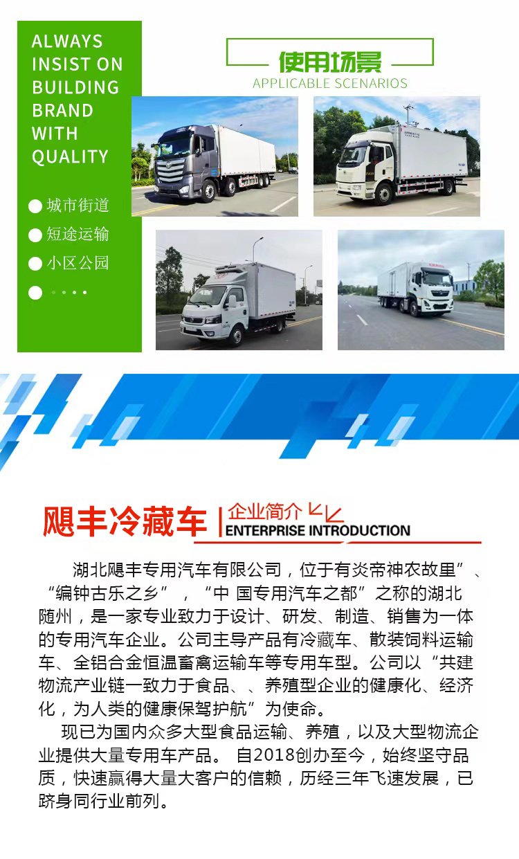 (1)制作工艺:厢体采用真空吸附、液压吸附一体成型生产线制造,三明治复合粘接,保温性能达到国家A级标准。