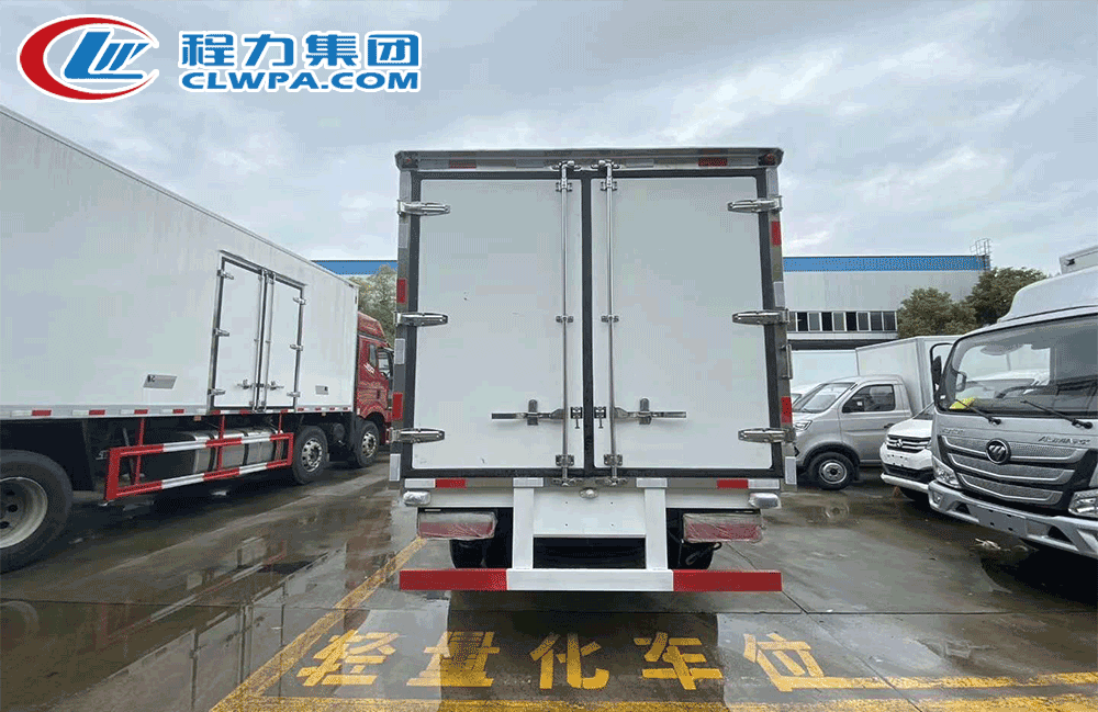 厢体内外玻璃钢,铝花纹底板,带侧门,后双开门,不锈钢门窗及锁件,加装华泰F400制冷机组。