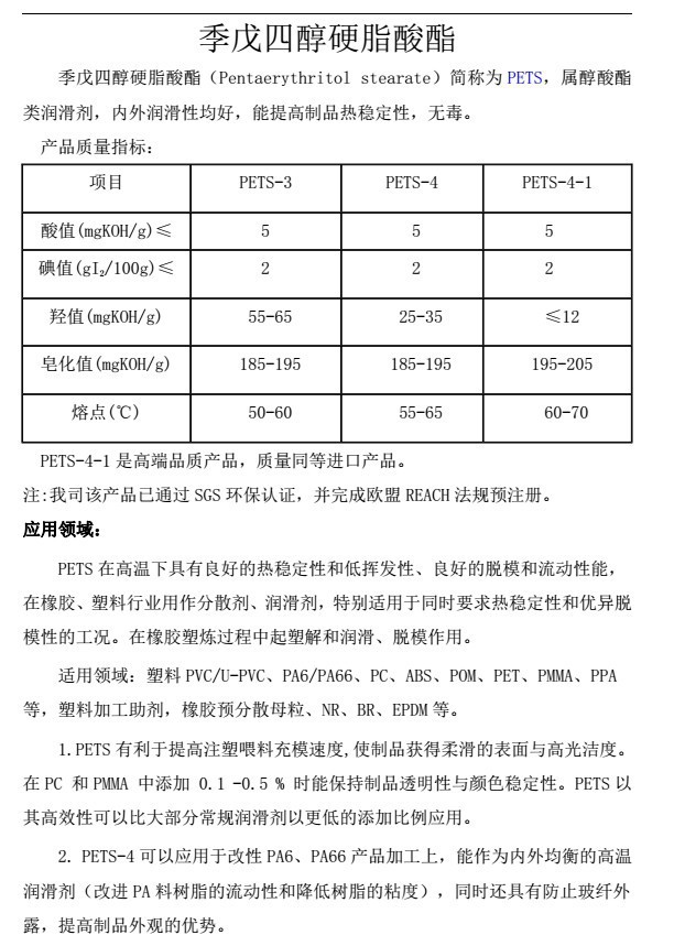代替龙沙、发基PETS分散剂 脱模剂 润滑剂耐高温改善表面光泽PETS 耐高温高流动PETS