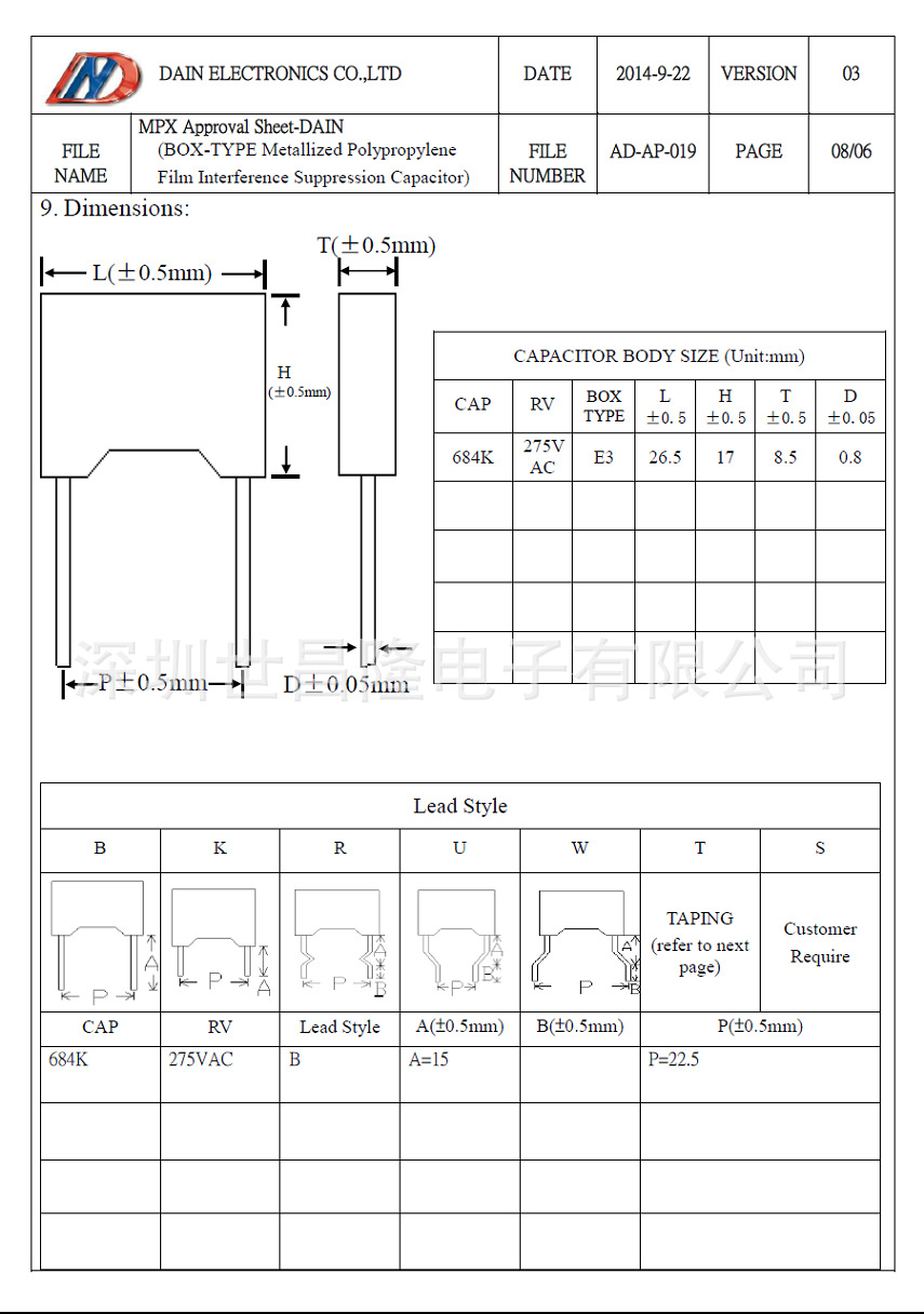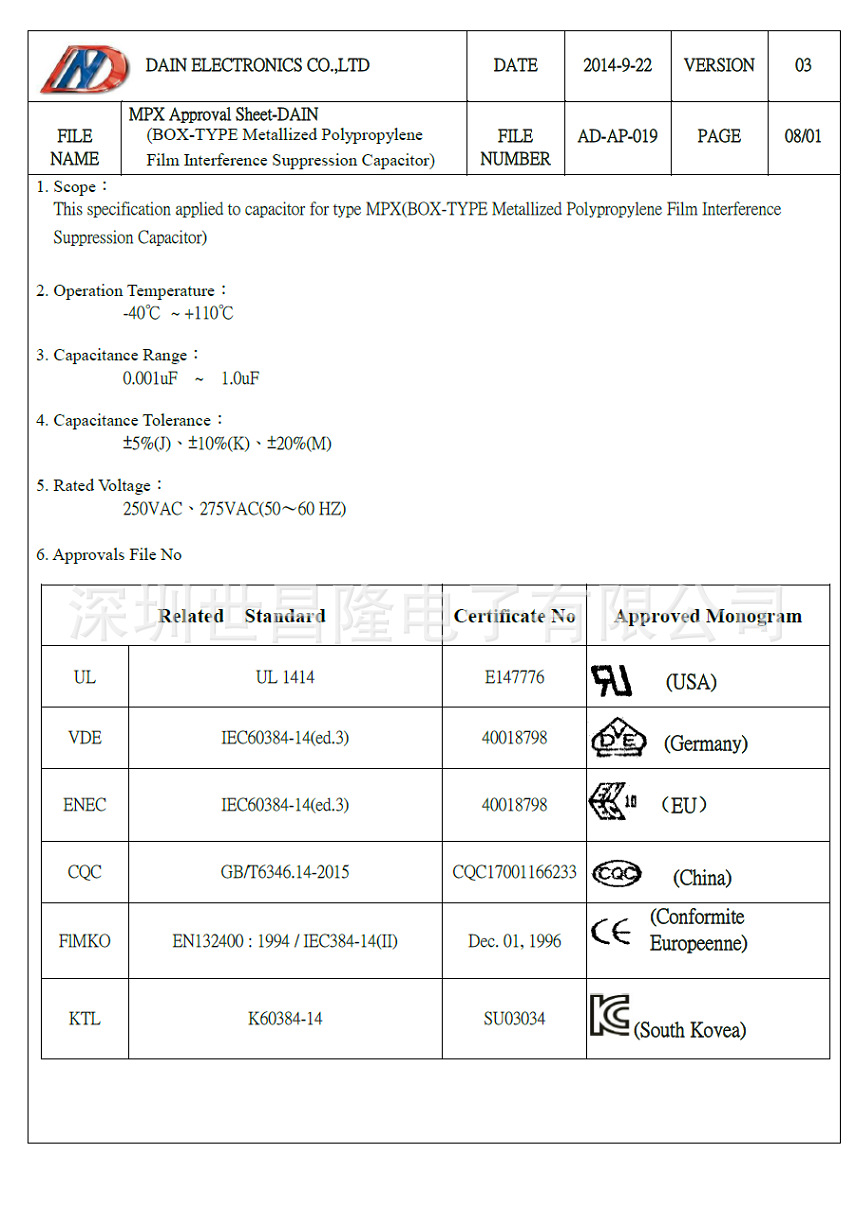 全球薄膜电容供应商排名17位。 台湾 爱岱恩 / D的主要客户有:天宝电子,,,茂硕电源,京泉华等。 产品展示